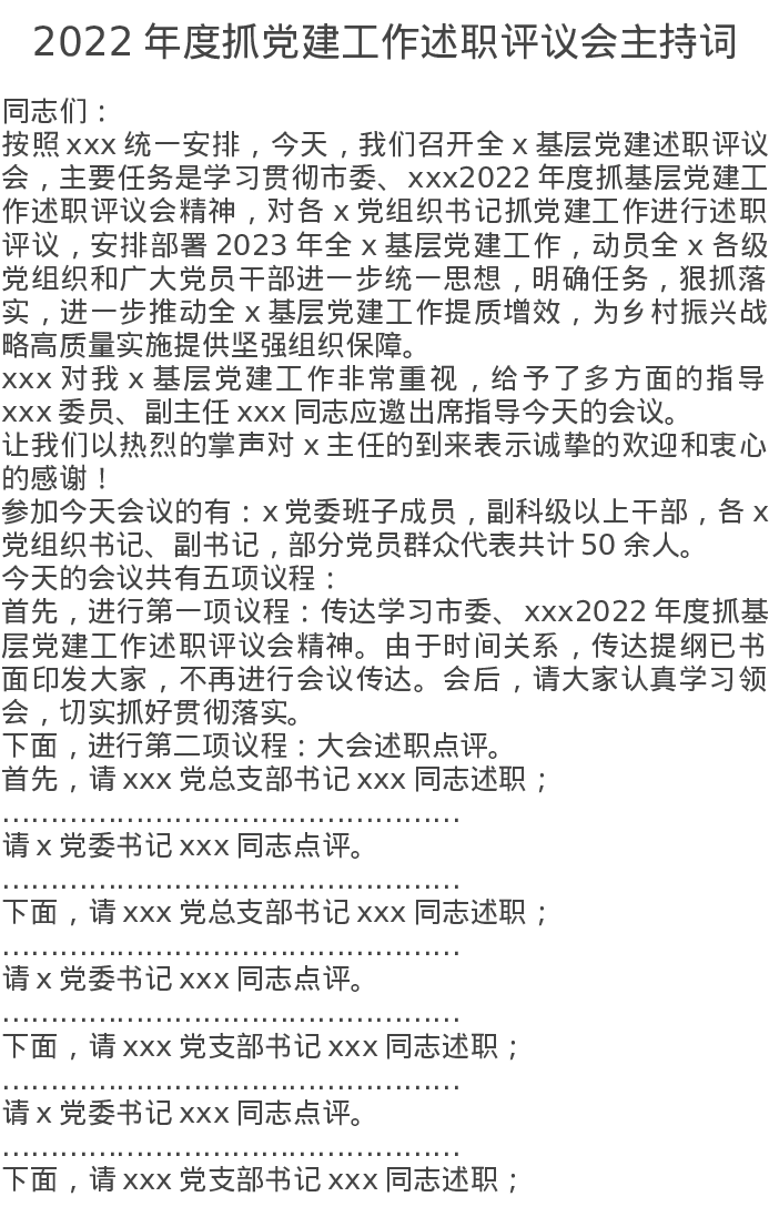 2022年度抓党建工作述职评议会主持词