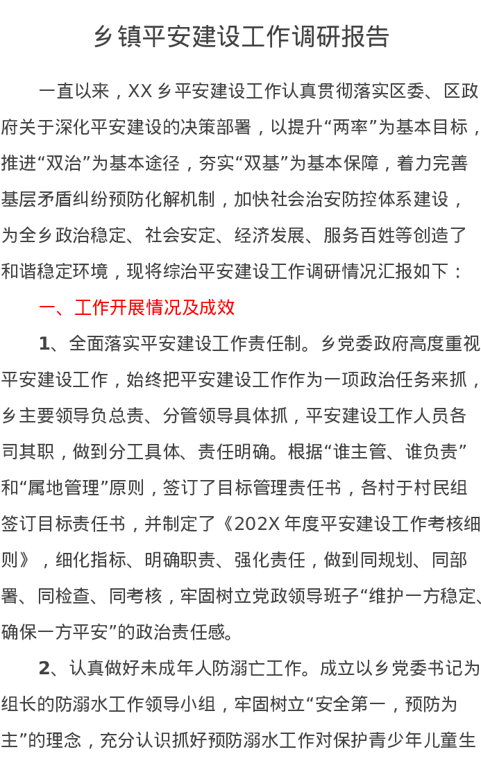 乡镇平安建设工作调研报告