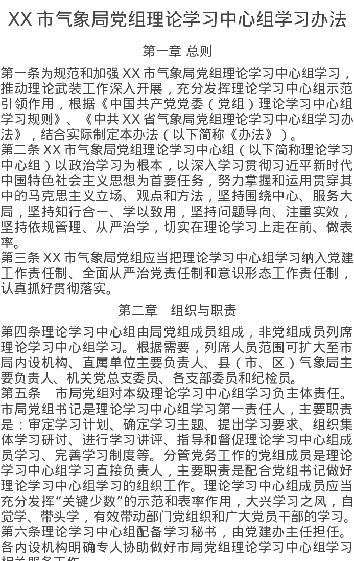 XX市气象局党组理论学习中心组学习办法