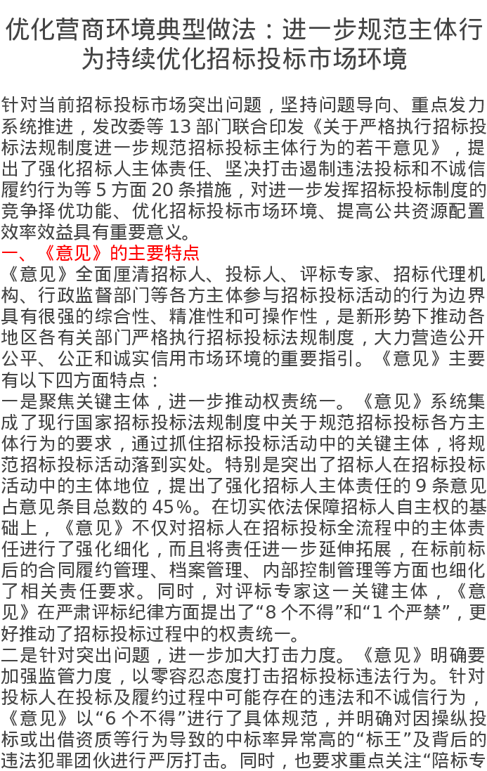 优化营商环境典型做法:进一步规范主体行为持续优化招标投标市场环境