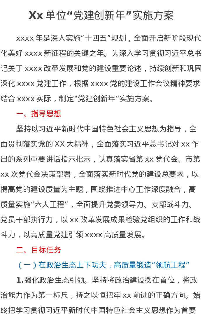 Xx单位“党建创新年”实施方案