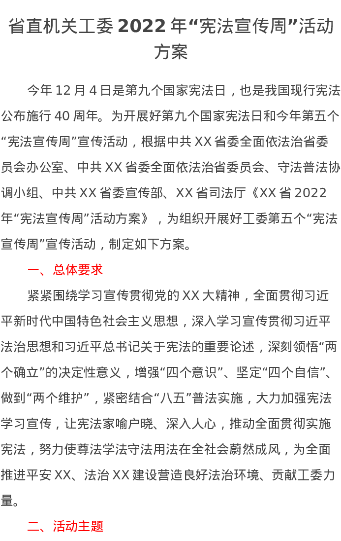 省直机关工委2022年“宪法宣传周”活动方案