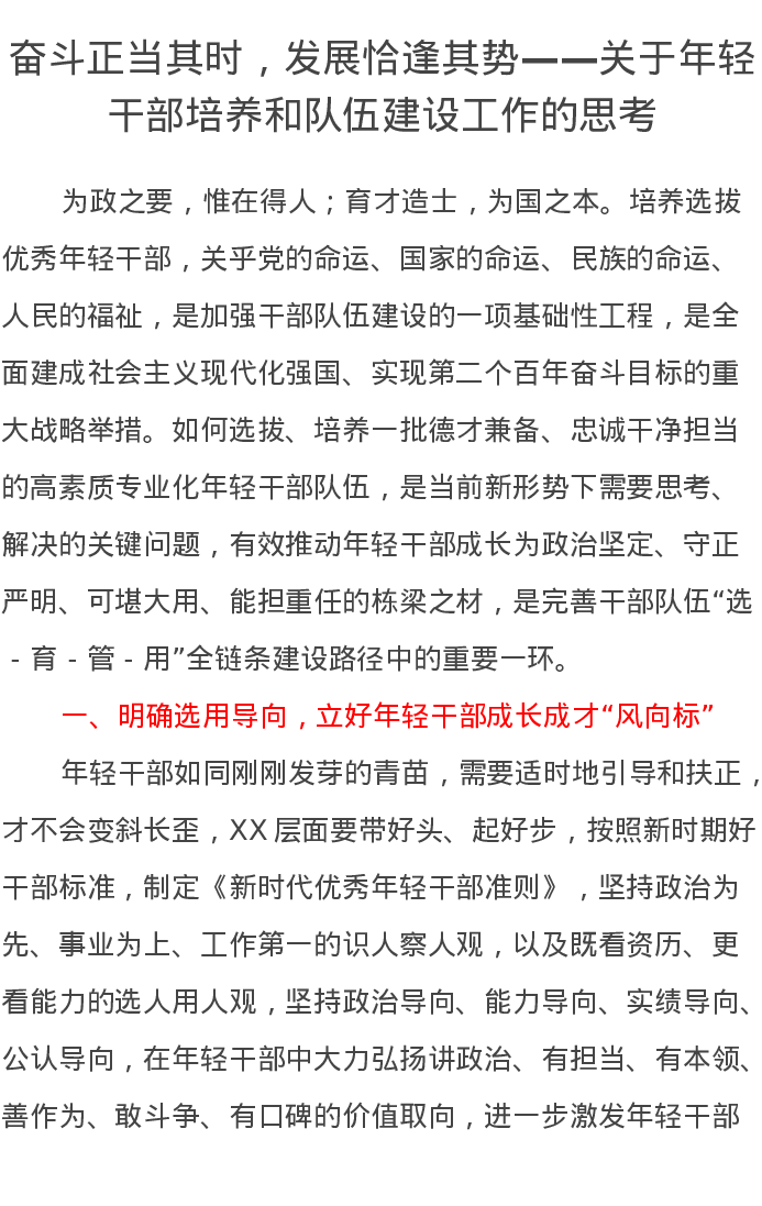 关于年轻干部培养和队伍建设工作的思考调研报告