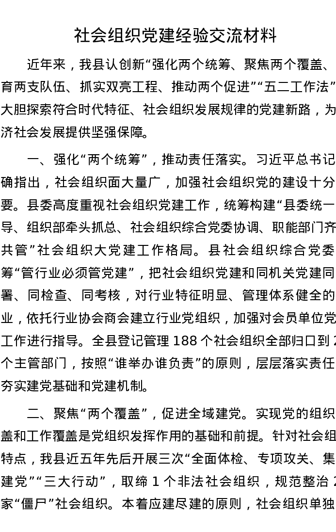 社会组织党建经验交流材料