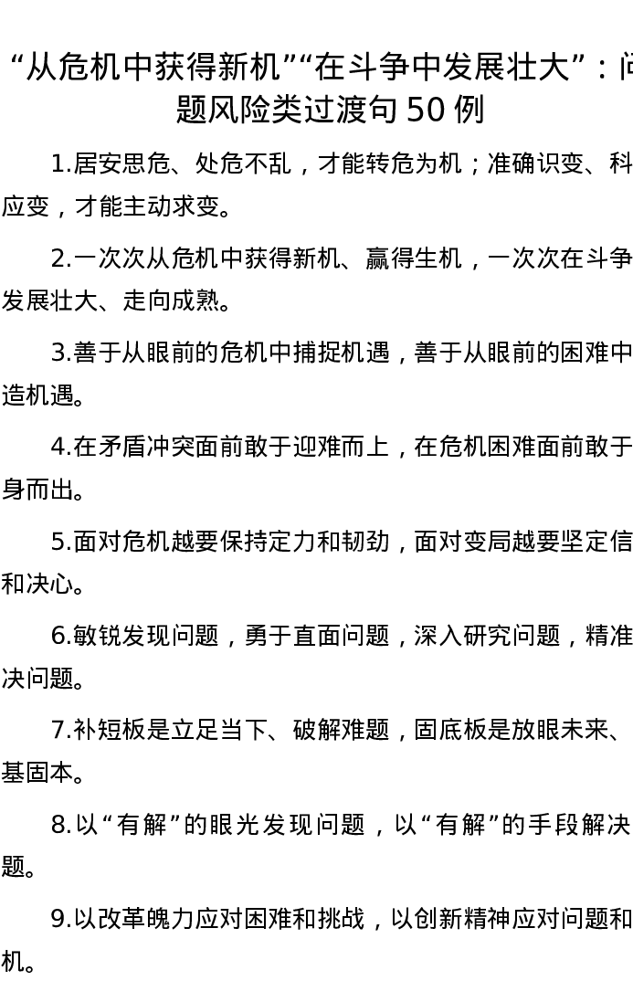 “从危机中获得新机”“在斗争中发展壮大”:问题风险类过渡句50例