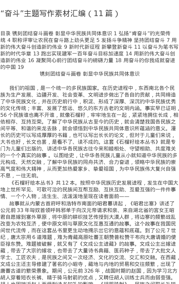 “奋斗”主题写作素材汇编(11篇)