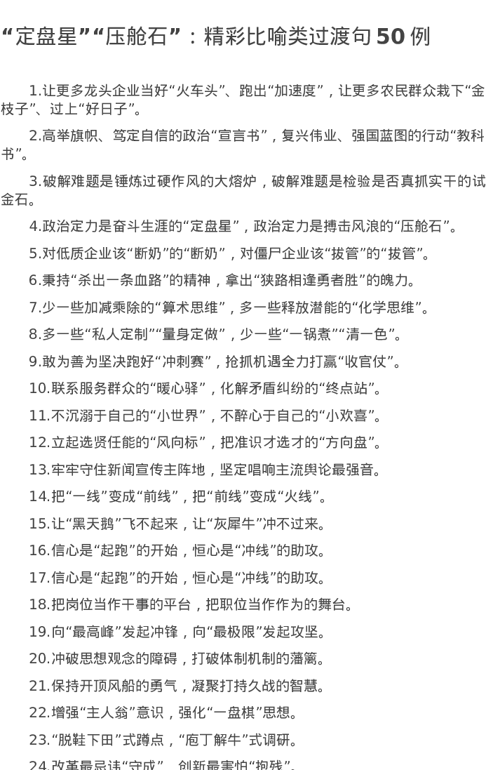“定盘星”“压舱石”:精彩比喻类过渡句50例