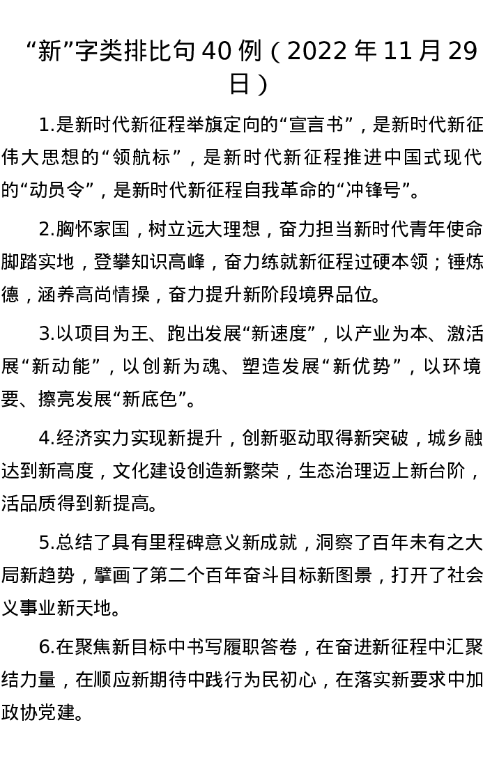 “新”字类排比句40例(2022年11月29日)