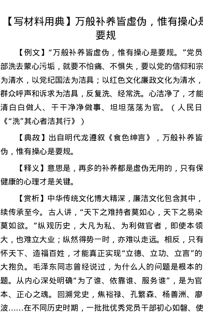 【写材料用典】万般补养皆虚伪,惟有操心是要规