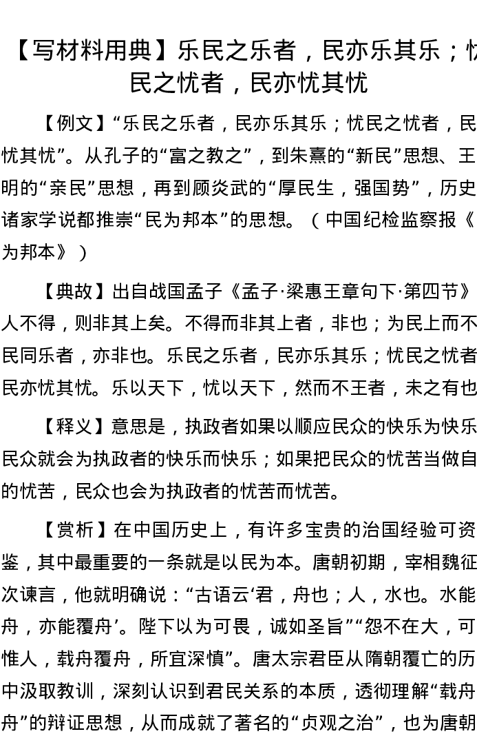 【写材料用典】乐民之乐者,民亦乐其乐;忧民之忧者,民亦忧其忧