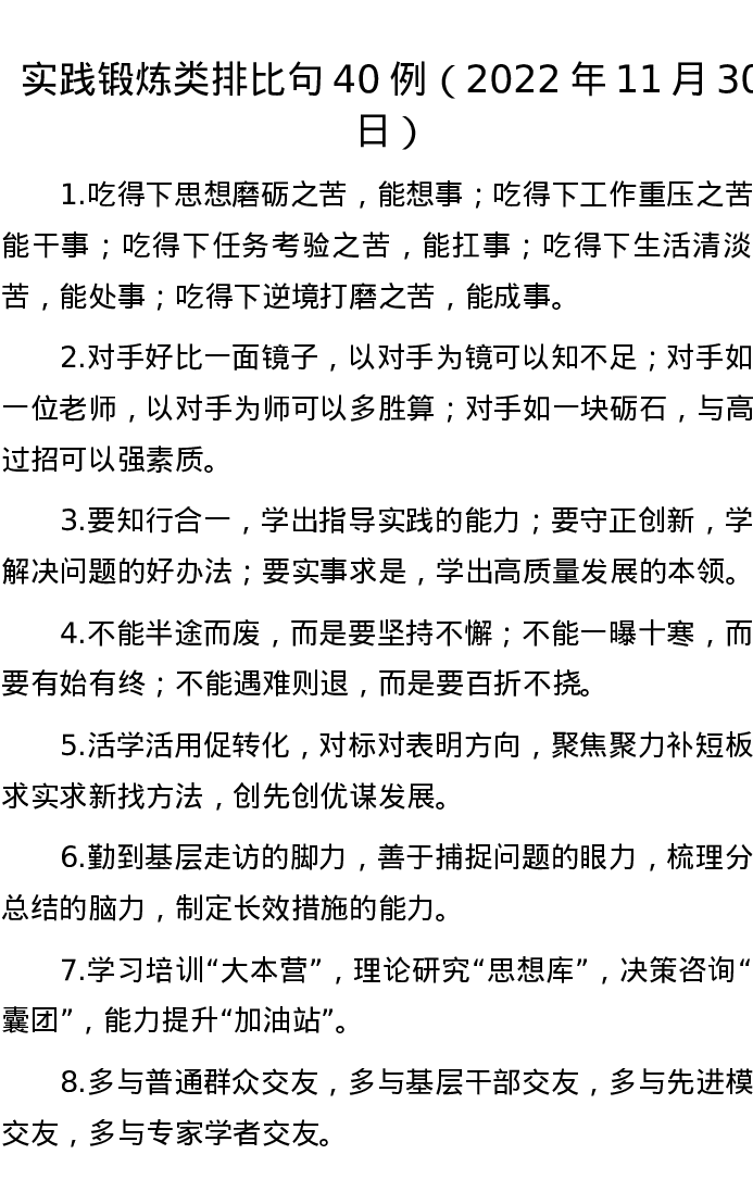 实践锻炼类排比句40例(2022年11月30日)