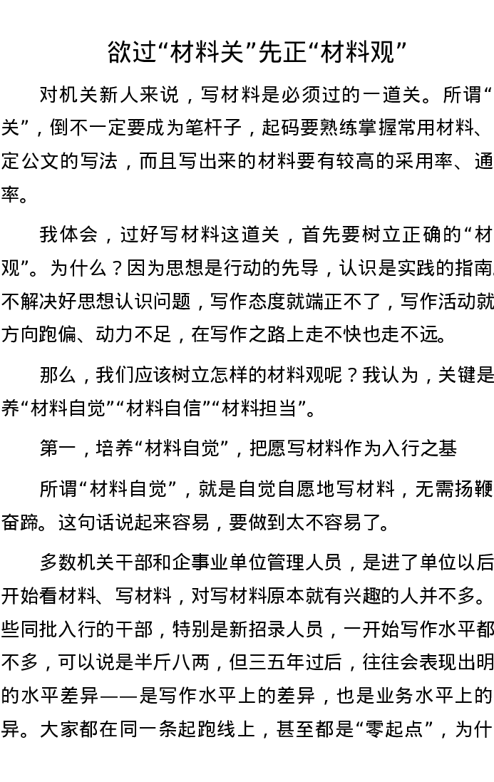 欲过“材料关” 先正“材料观”