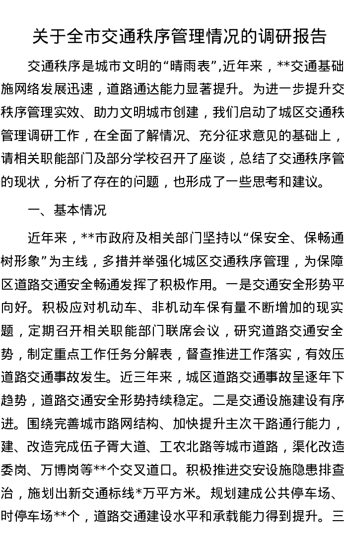 关于全市交通秩序管理情况的调研报告