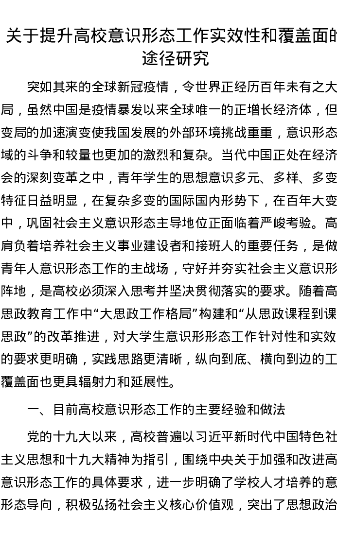 关于提升高校意识形态工作实效性和覆盖面的途径研究