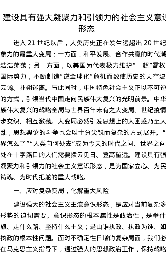建设具有强大凝聚力和引领力的社会主义意识形态