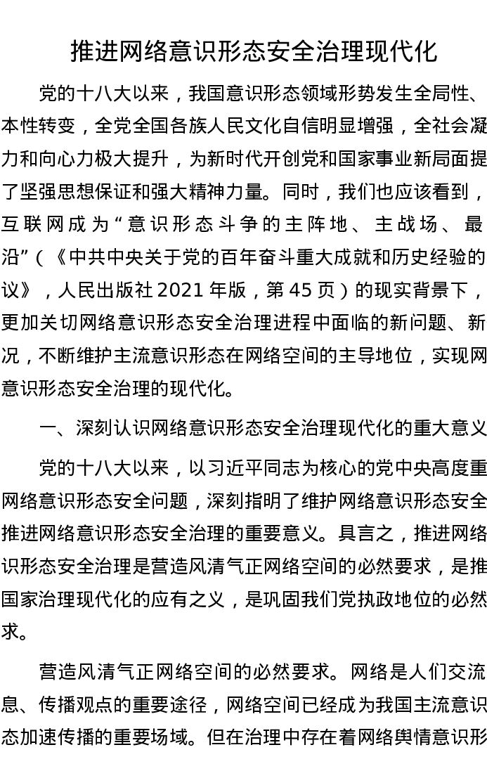 推进网络意识形态安全治理现代化