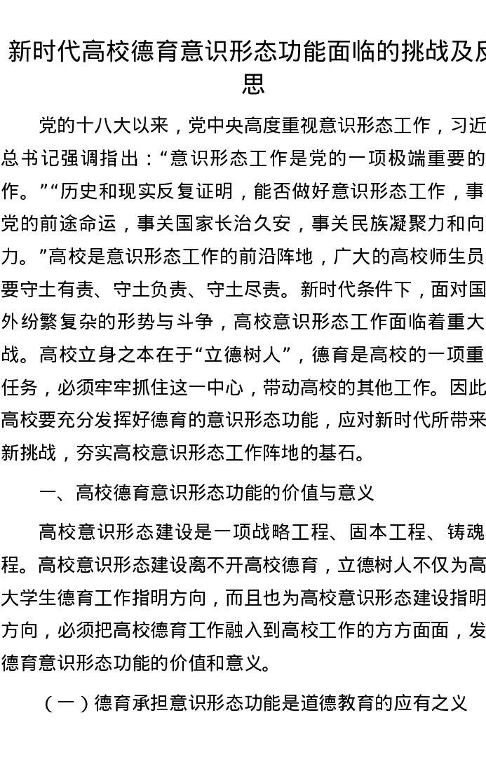 新时代高校德育意识形态功能面临的挑战及反思