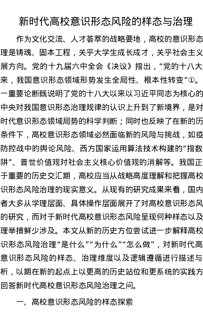 新时代高校意识形态风险的样态与治理