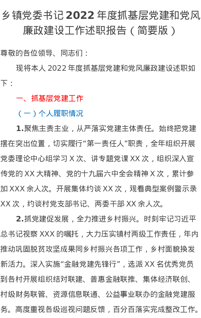 乡镇党委书记2022年度抓基层党建和党风廉政建设工作述职报告