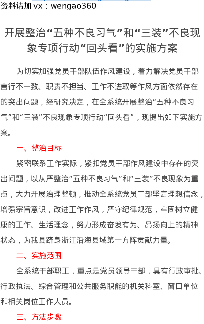 开展整治“五种不良习气”和“三装”不良现象专项行动“回头看”的实施方案