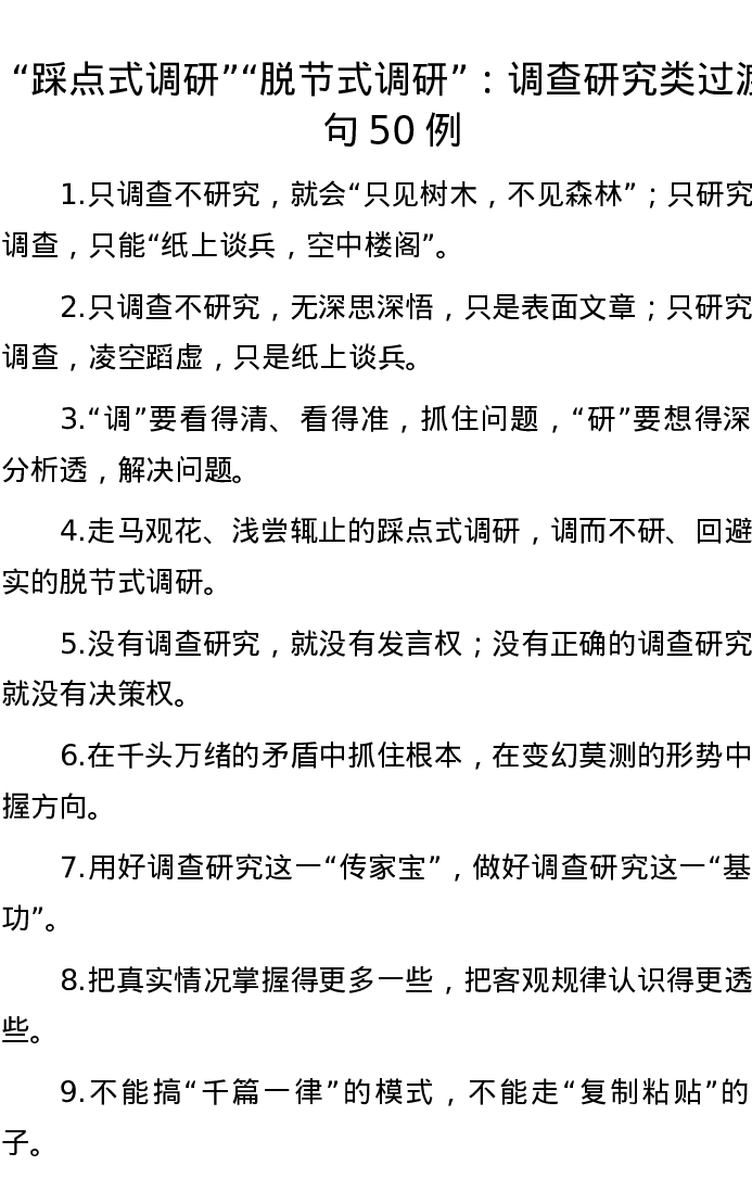 “踩点式调研”“脱节式调研”:调查研究类过渡句50例