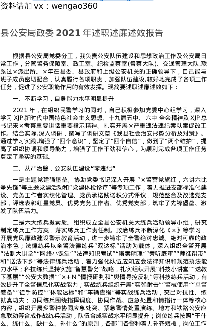 县公安局政委2021年述职述廉述效报告