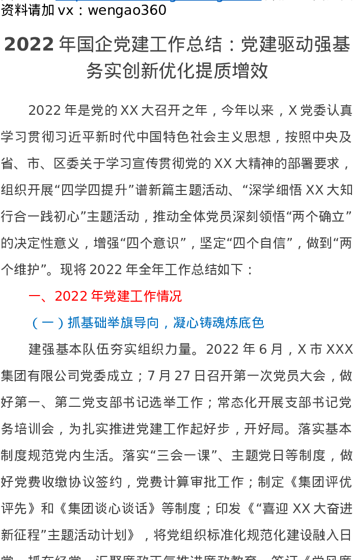 2022年国企党建工作总结:党建驱动强基务实创新优化提质增效