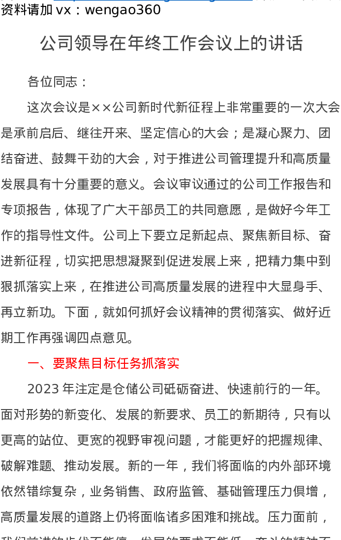 公司领导在年终工作会议上的讲话