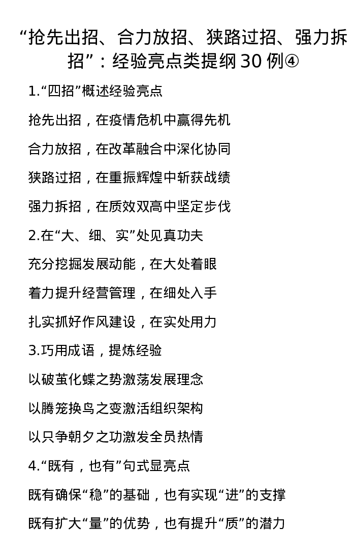 “抢先出招、合力放招、狭路过招、强力拆招”:经验亮点类提纲30例④