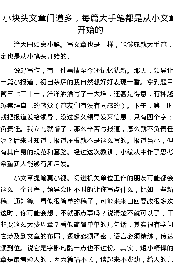 小块头文章门道多,每篇大手笔都是从小文章开始的