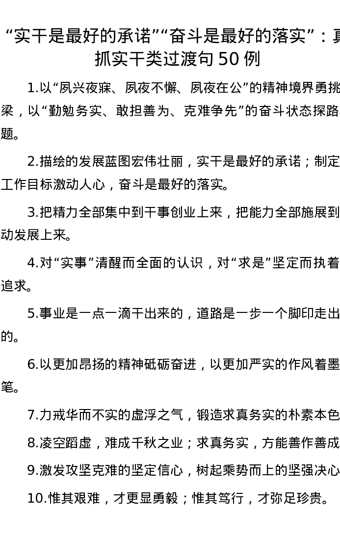 “实干是最好的承诺”“奋斗是最好的落实”:真抓实干类过渡句50例