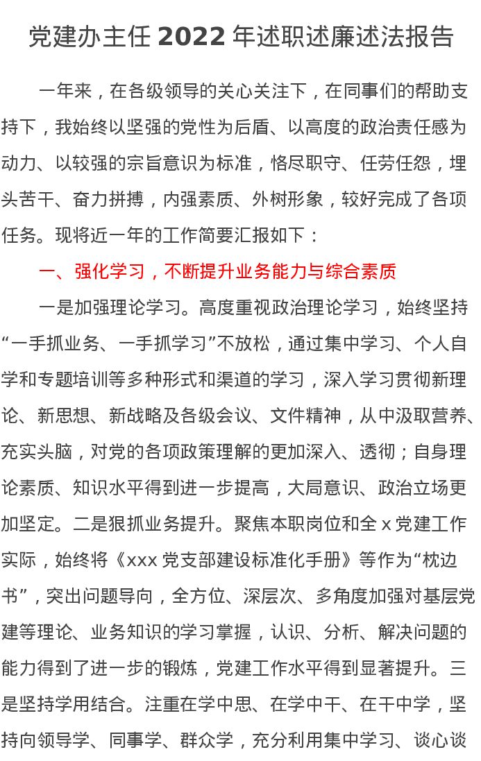 党建办主任2022年述职述廉述法报告