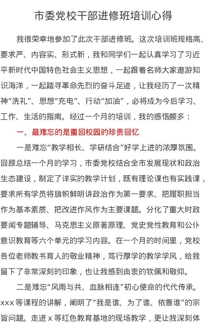 市委党校干部进修班培训心得