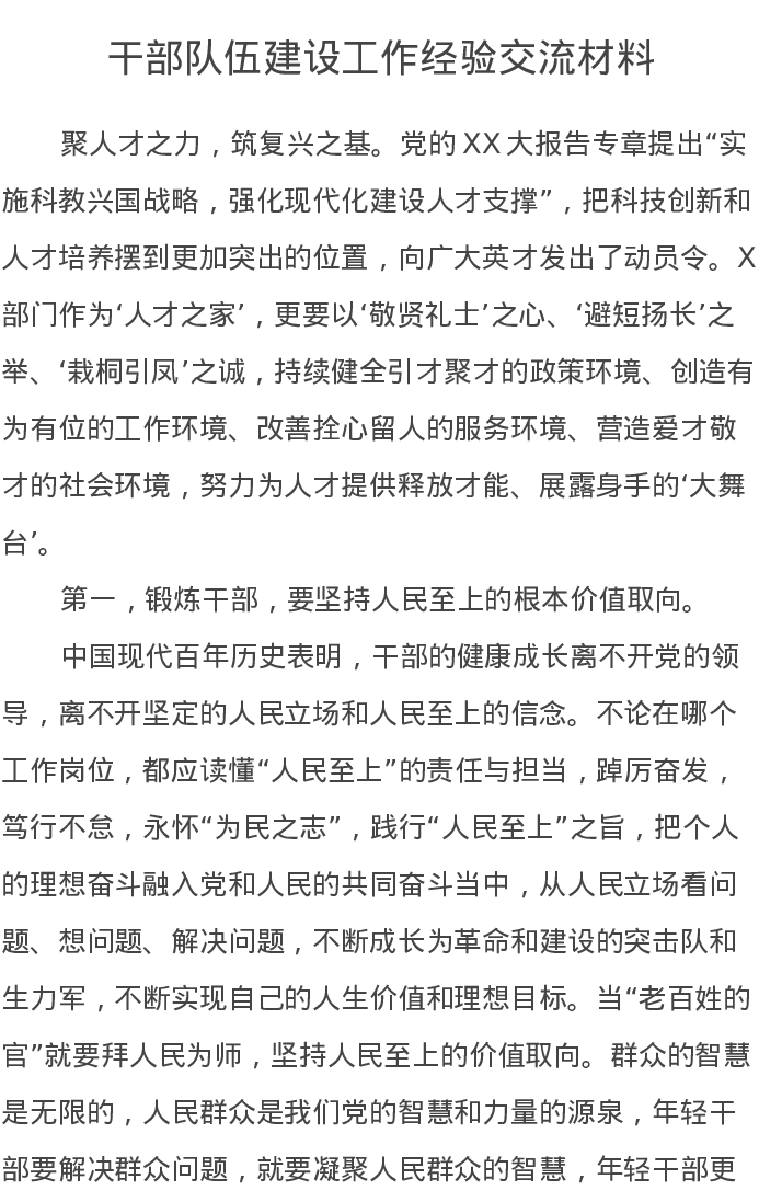 干部队伍建设工作经验交流材料