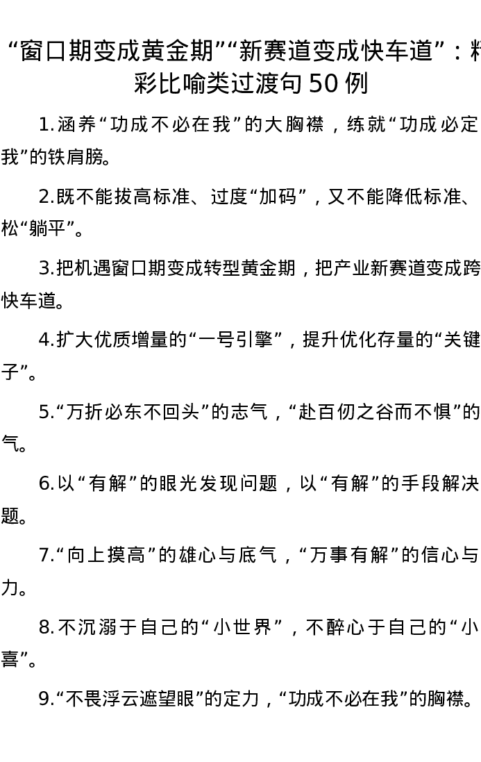 “窗口期变成黄金期”“新赛道变成快车道”:精彩比喻类过渡句50例