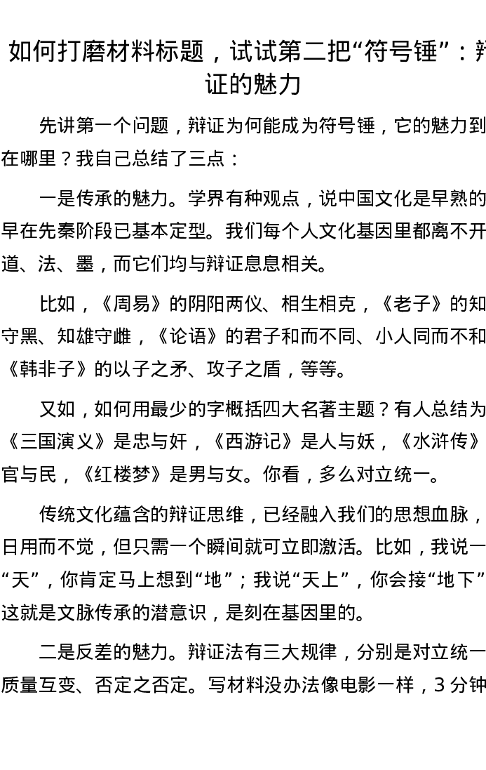 如何打磨材料标题,试试第二把“符号锤”:辩证的魅力