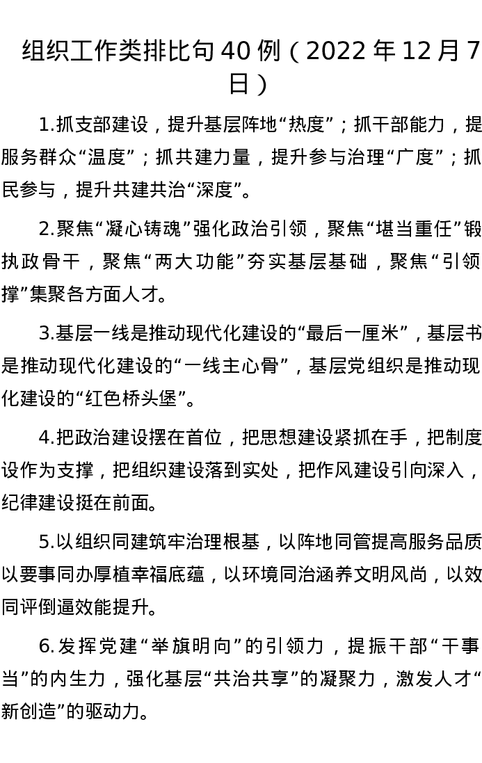组织工作类排比句40例(2022年12月7日)