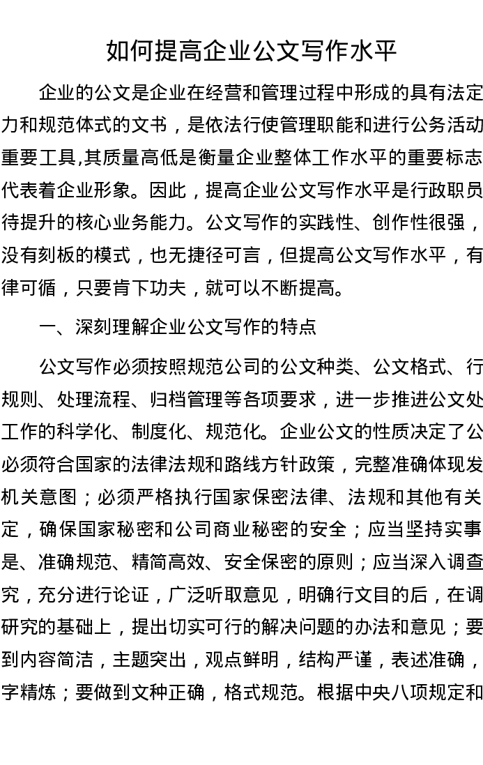 如何提高企业公文写作水平