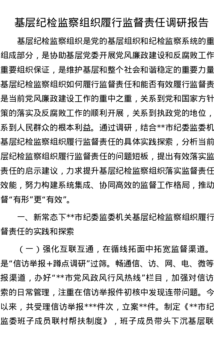 基层纪检监察组织履行监督责任调研报告