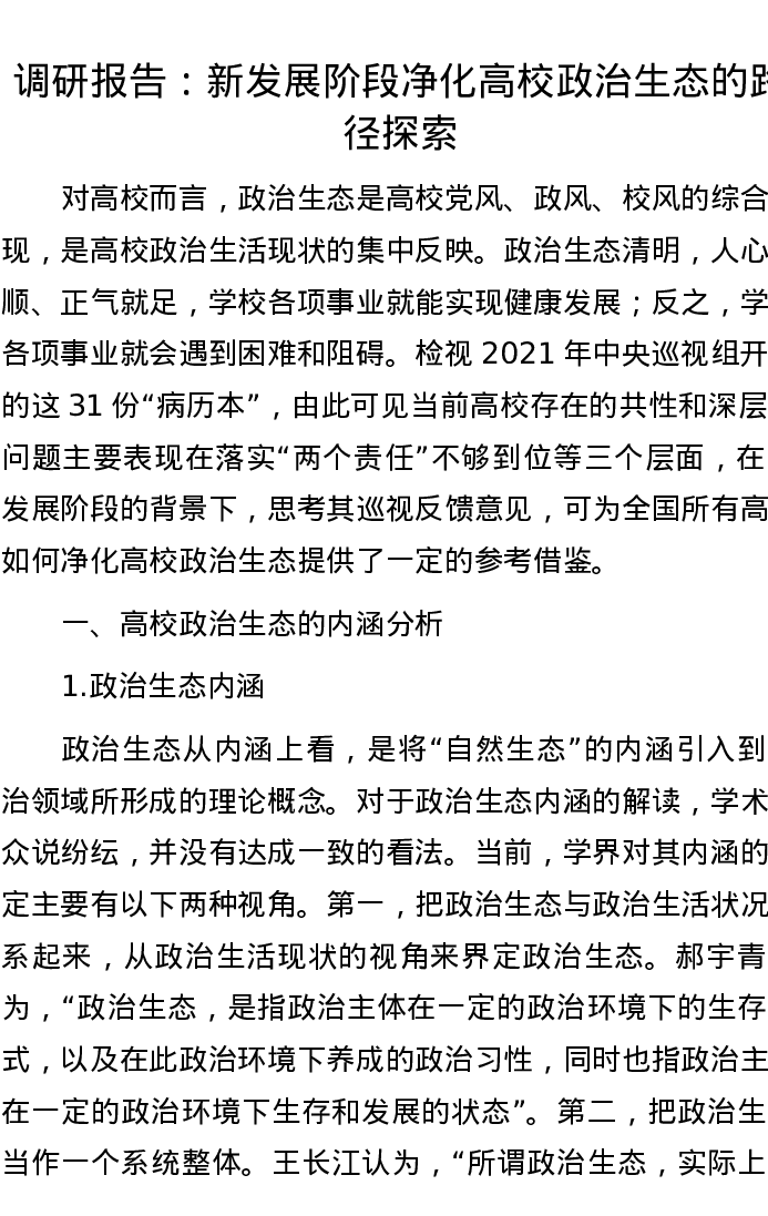 调研报告:新发展阶段净化高校政治生态的路径探索