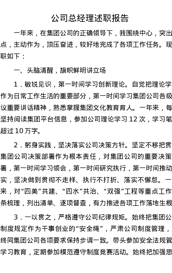 公司总经理述职报告