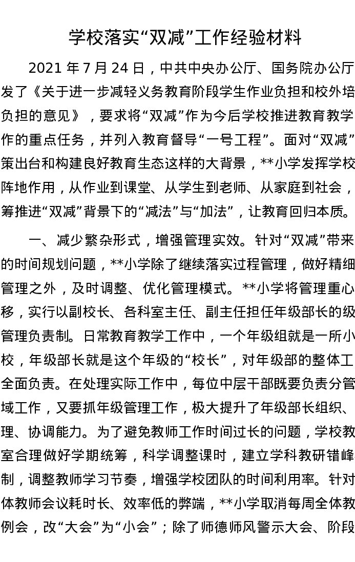 学校落实“双减”工作经验材料