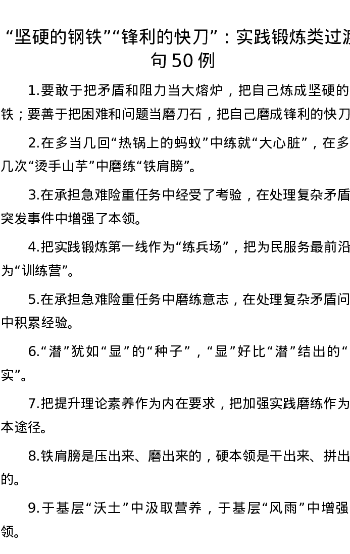 “坚硬的钢铁”“锋利的快刀”:实践锻炼类过渡句50例