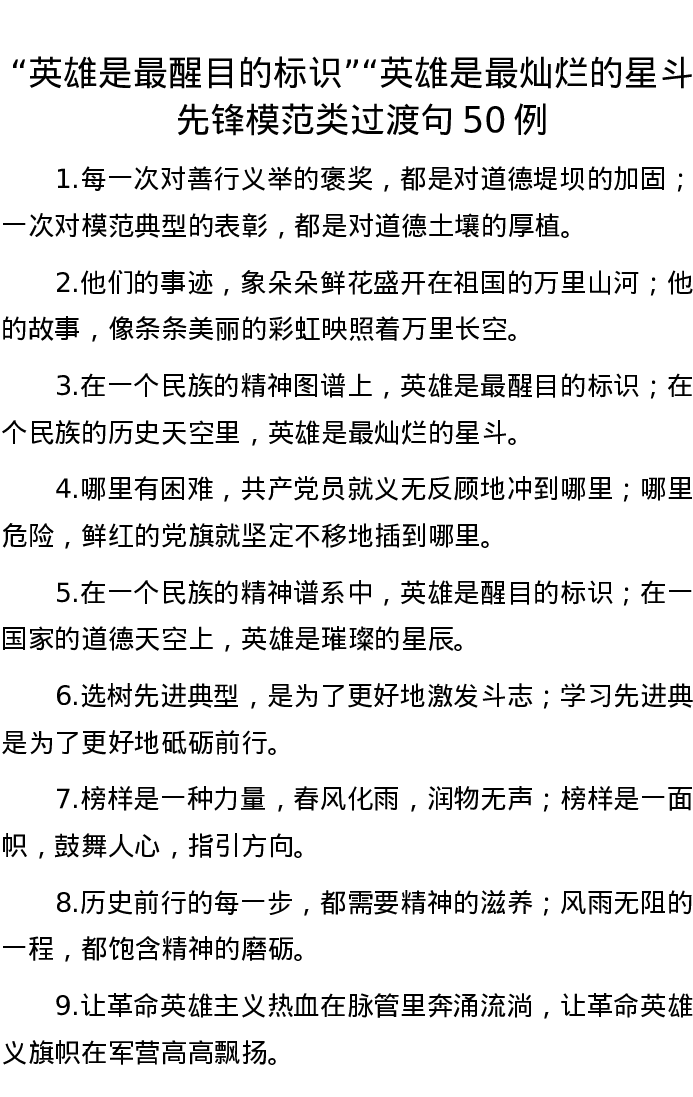 “英雄是最醒目的标识”“英雄是最灿烂的星斗”:先锋模范类过渡句50例