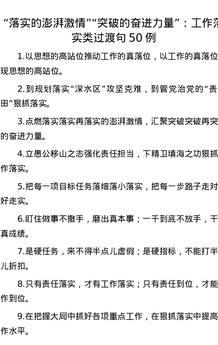 “落实的澎湃激情”“突破的奋进力量”:工作落实类过渡句50例