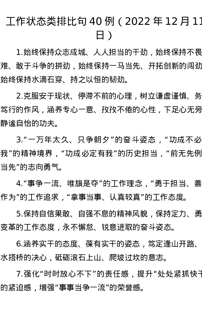 工作状态类排比句40例(2022年12月11日)