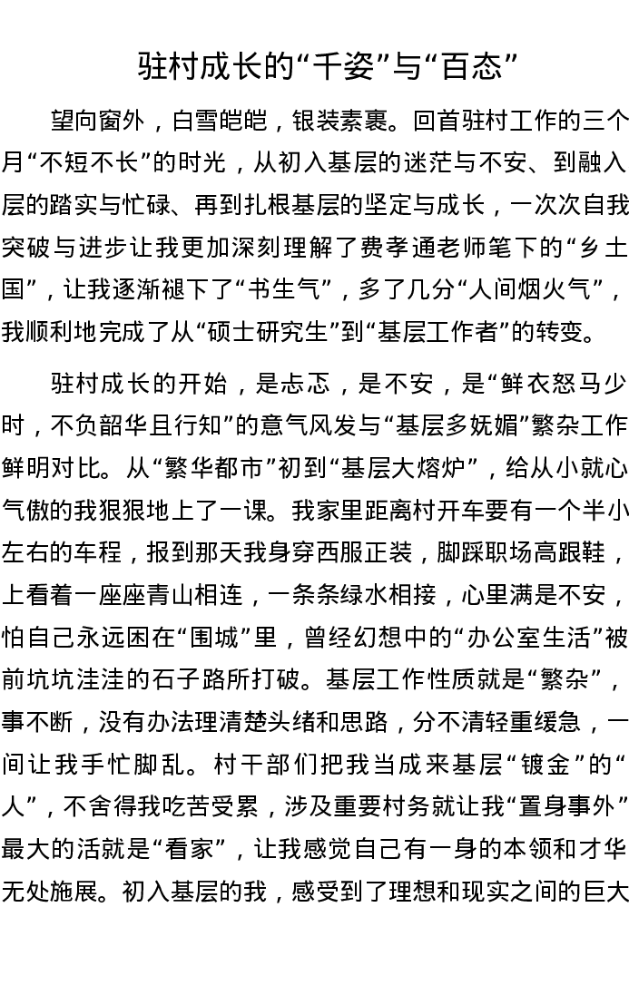 驻村成长的“千姿”与“百态”