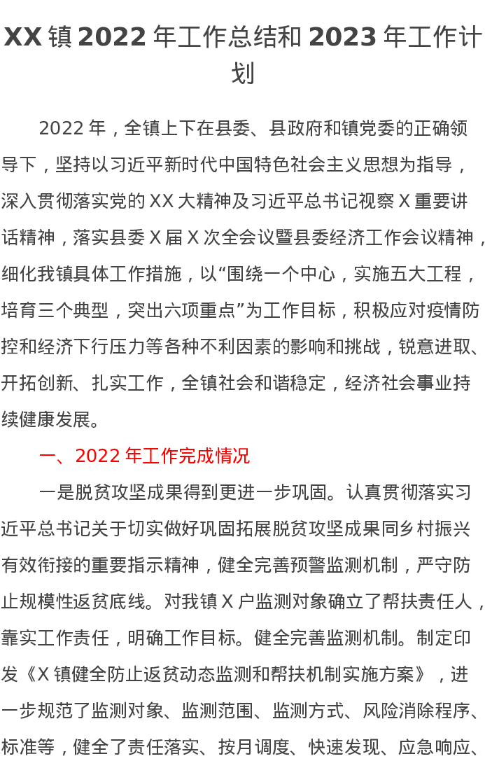 XX镇2022年工作总结和2023年工作计划3
