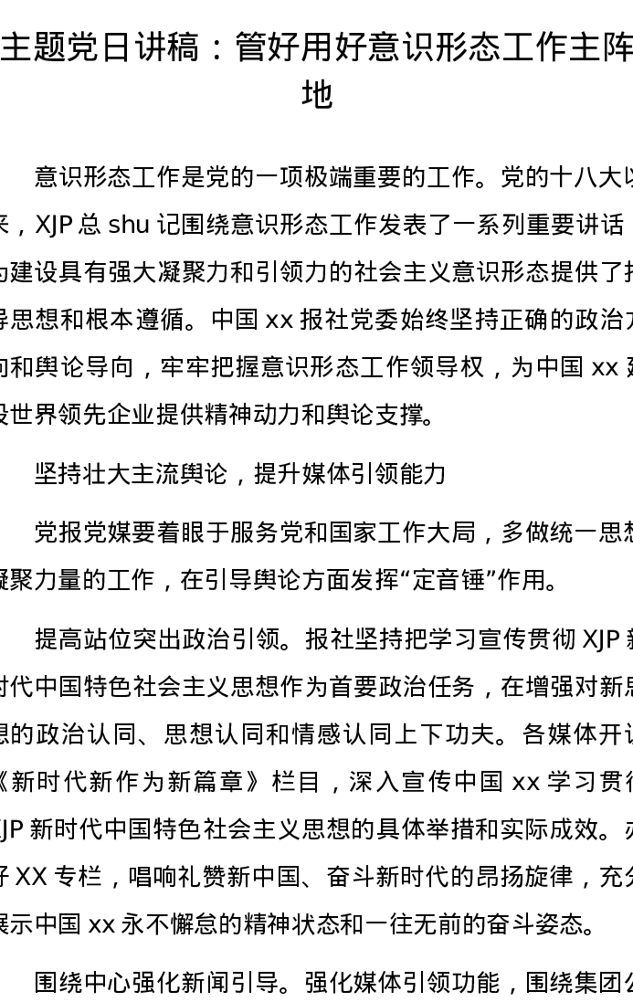 主题党日党课讲稿:管好用好意识形态工作主阵地(公司)