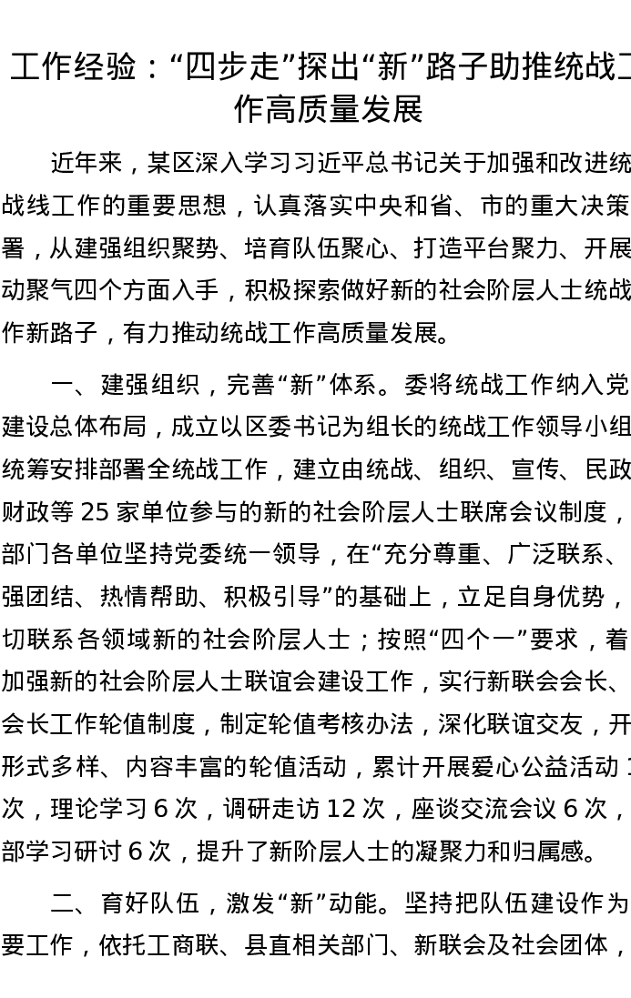 工作经验:“四步走”探出“新”路子 助推统战工作高质量发展